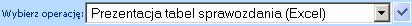 Dla sprawozdanie OZPS istnieje możliwość zaprezentowania tabel tego sprawozdania w programie MS Excel. W tym celu na liście zaznaczamy interesujące nas sprawozdanie i wykonujemy operację Prezentacja tabel sprawozdania (Excel):